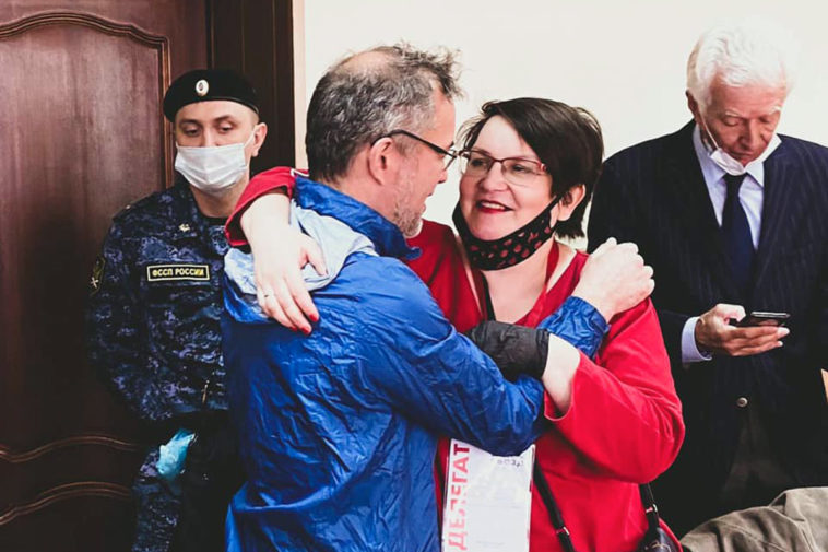Юлия Галямина с мужем в районном суде Великого Новгорода. Фото: личный архив Юлии Галяминой