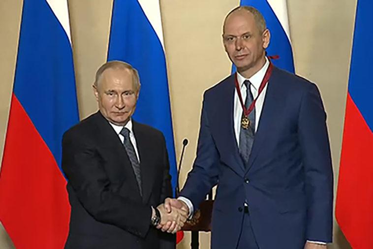 лава «Мостотреста» Леонид Рыженькин с Владимиром Путиным. Фото: сайт Герои транспорта России