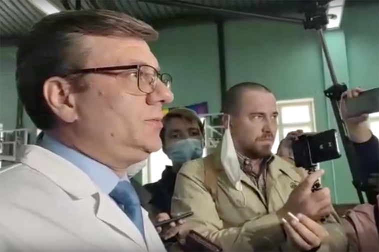 Главный врач Мураховский Александр Григорьевич общается с прессой. Кадр из видео «Министерства здравоохранения Омской области».