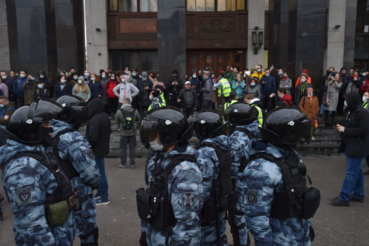 Полиция на акции 21 апреля у библиотеки имени Ленина. Фото: Юрий Белят / «МБХ медиа»