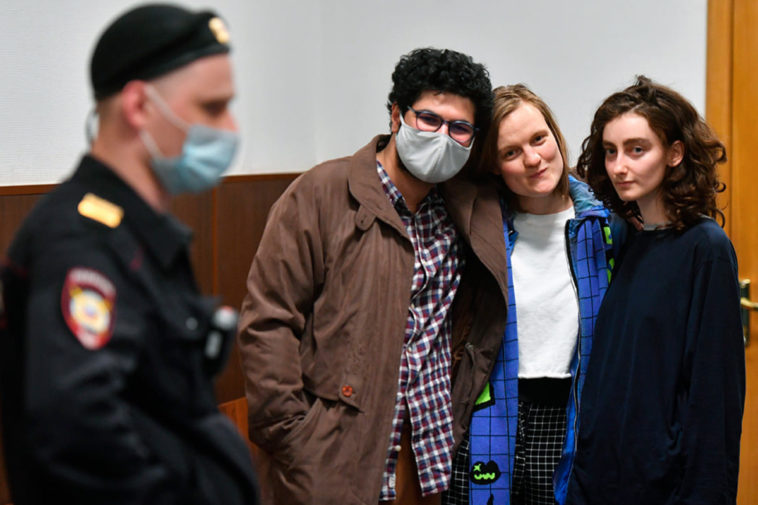 Cотрудники журнала «DOXA» Армен Арамян, Наташа Тышкевич и Алла Гутникова в Басманном суде. Фото: Татьяна Лиханова / Facebook