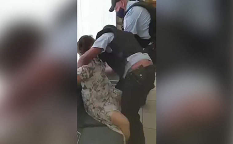 Задержание Валентины Муженской. Скриншот из видео очевидца