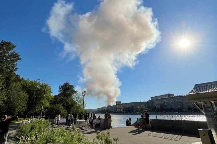 Вот так горит склад пиротехники в центре Москвы. Видео: Михаил Сонин / МБХ медиа pic.twitter.com/4gP7ecL50i