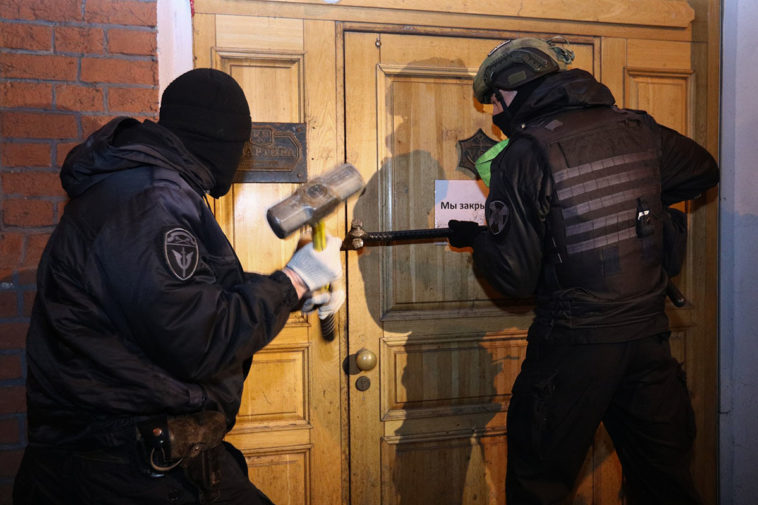 Полицеские вскрывают дверь. Фото: Кирилл Зыков / Агентство «Москва»