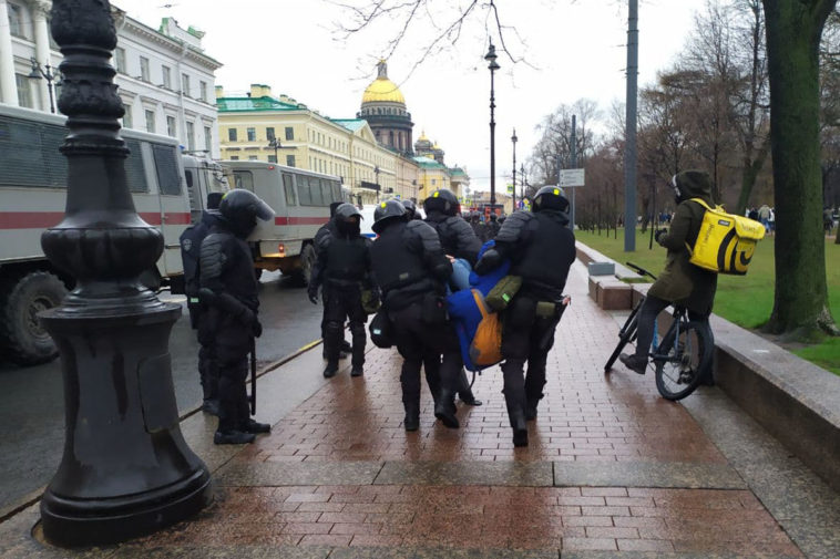 Задержание участника акции 21 апреля в Петербурге. Фото: «МБХ медиа»