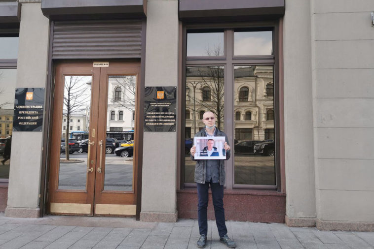 Реаниматолог Игорь Никонов в пикете в поддержку Алексея Навального. Фото: «Альянс врачей»