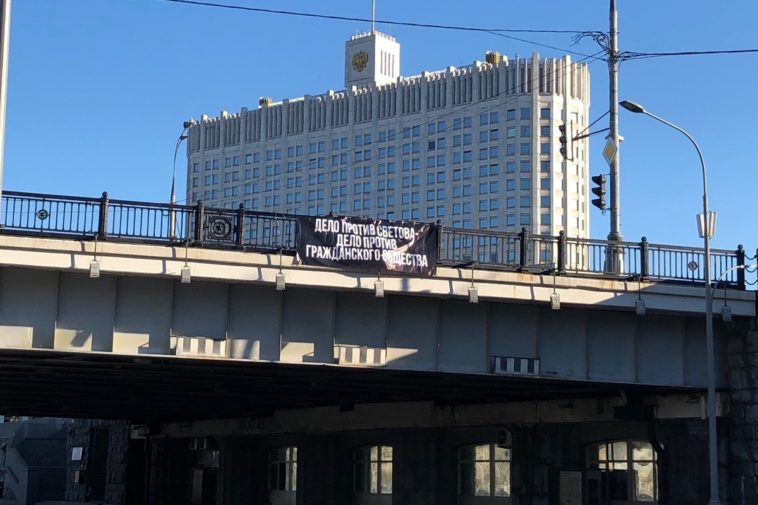 Активисты вывесили баннер «Дело против Светова — дело против гражданского общества».