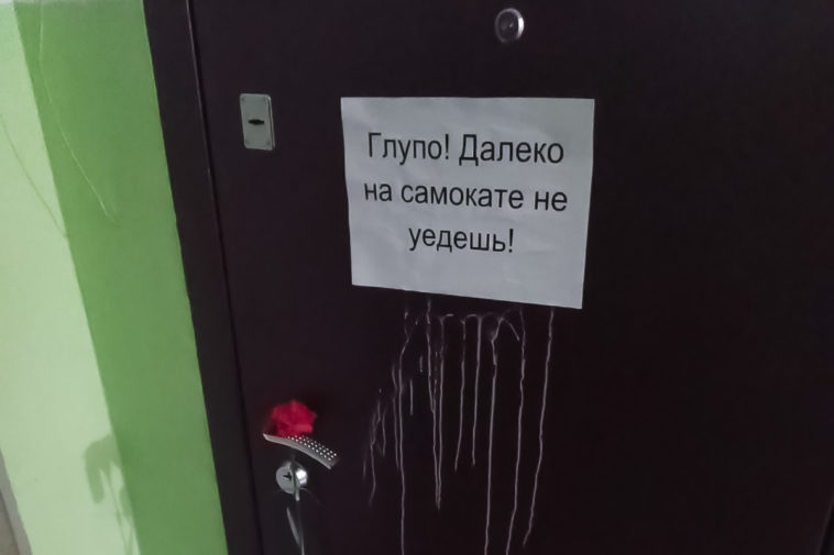 Вайсенберг переехал с семьей из Москвы в Нижний Новгород 30 марта, но продолжил получать угрозы — на двери новой квартиры, где теперь живет семья, повесили две гвоздики и приклеили лист с фразой: «Глупо! Далеко на самокате не уедешь!».